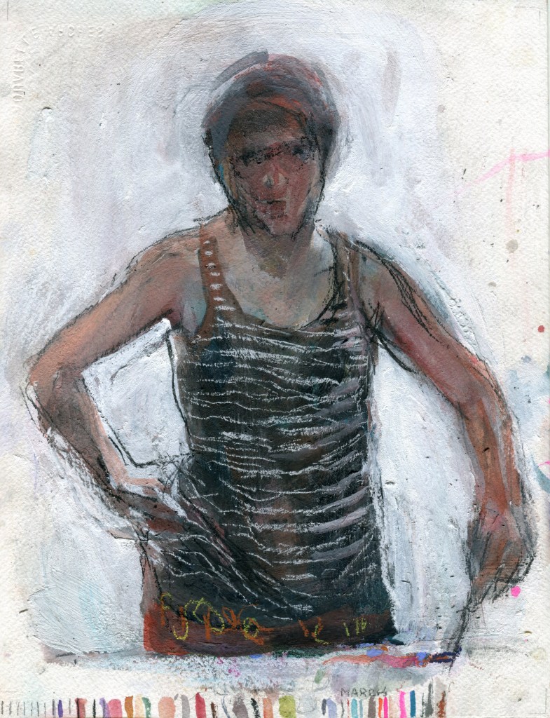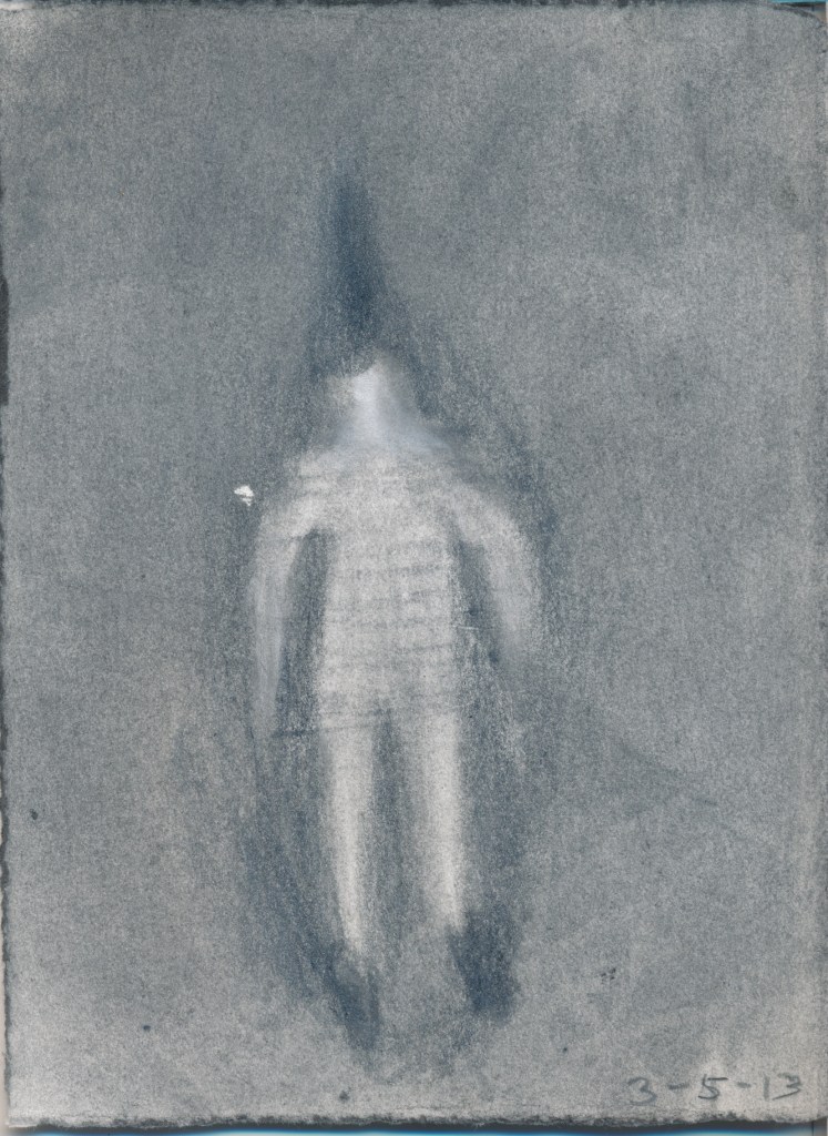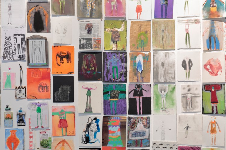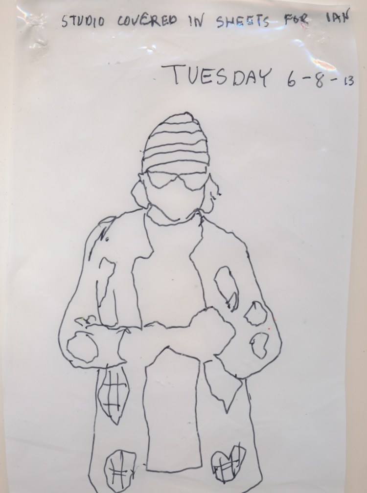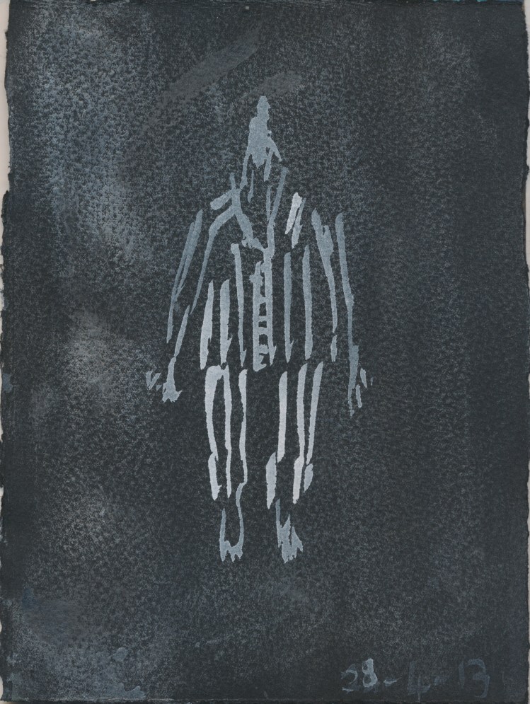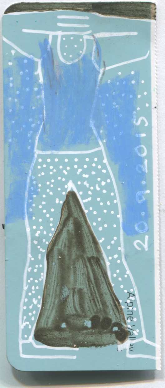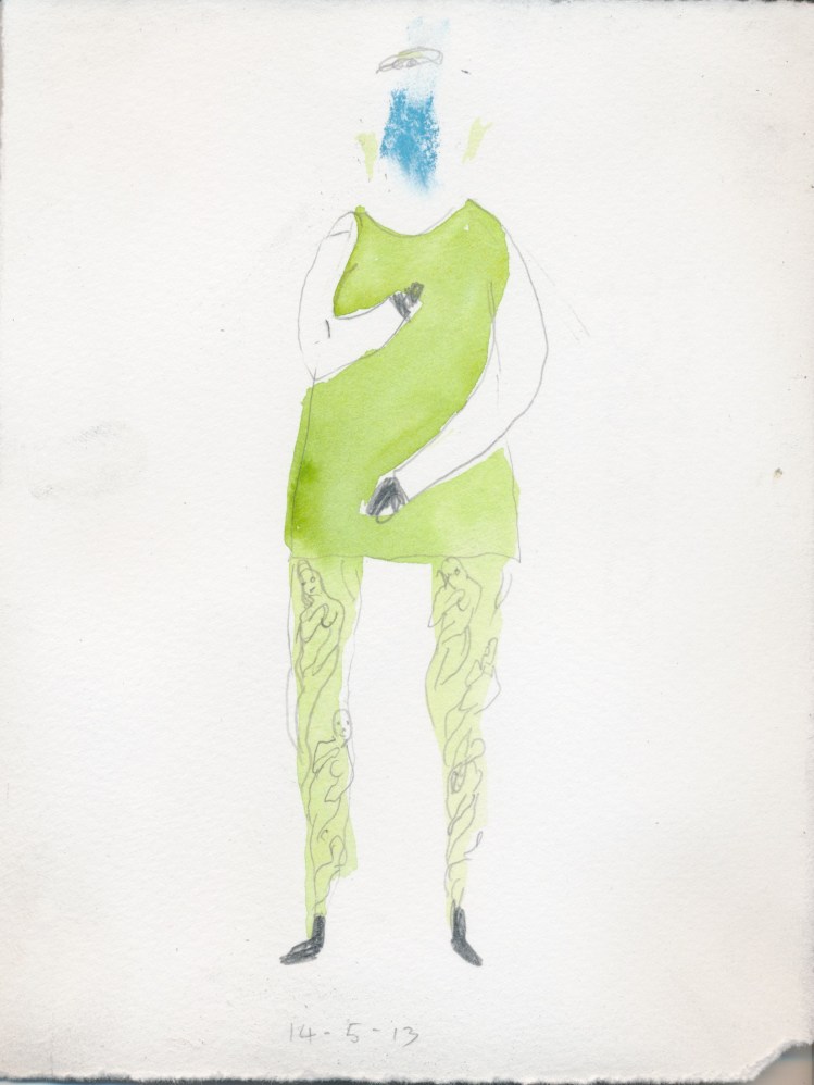 Since April 2013 I have been making a drawing of what I wear each day. The drawings respond to much more than my clothing, varying widely in their approach and media. From April 2016 to April 2017 I produced an animation. I have subsequently focused on monthly projects: A quilt in May 2017, a set of Polaroids in June 2018, a bi-fold book in September 2018, a tablecloth that I embroidered on my pilgrimage around the Japanese island of Shikoku in 2019, watercolours of Zoom meetings in May 2020, an embroidered and beaded blanket from the 2021 lockdown…..